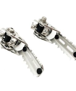 These pegs provide optimal grip even for heavy boots, thanks to their serrated edge. They fold up neatly, close to the crash bars.